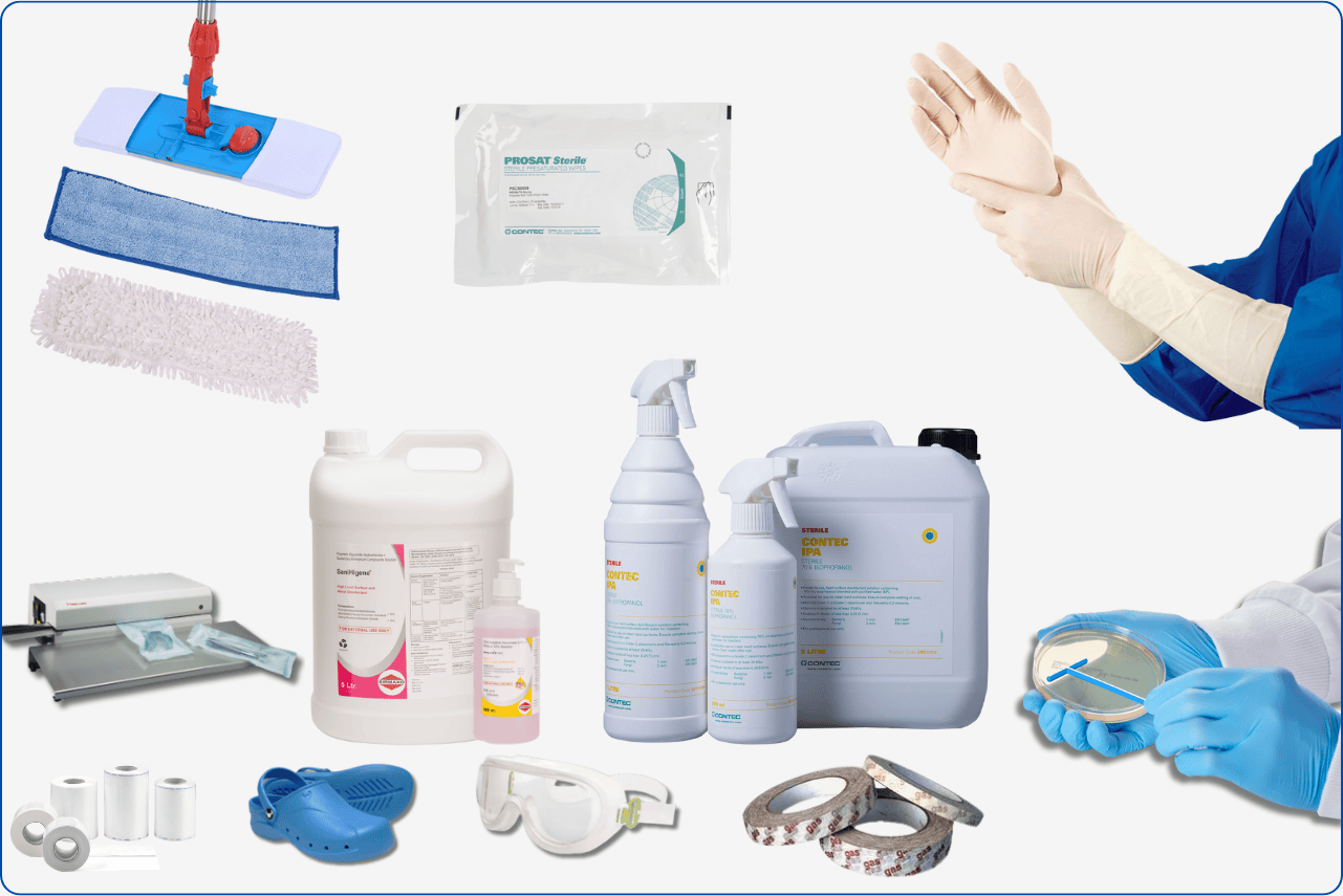 We offer a comprehensive range of cleanroom essentials including sterile and non-sterile garments, nitrile and latex gloves, cleanroom-compatible writing accessories (pens, markers, paper), autoclavable goggles, and a full spectrum of disinfectants such as IPA, hydrogen peroxide blends, and sporicidal agents.